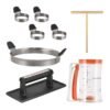 Make breakfast quick and entertaining with the Culinary Breakfast Kit. The batter mixer ensures perfectly mixed and poured muffins and pancakes. and the crepe spreader makes round and thin crepes. so your sweet and savory breakfast options are endless. The cast iron griddle press and egg rings are must-haves for evenly cooked eggs. sausage. and bacon. The Culinary Breakfast Kit includes everything you’ll need to craft delicious breakfast time and time again!