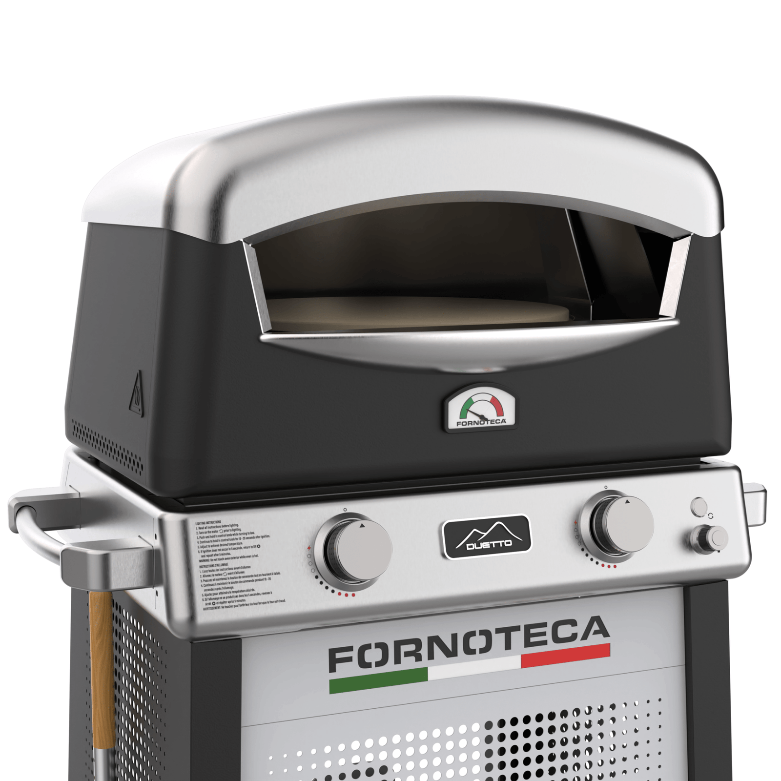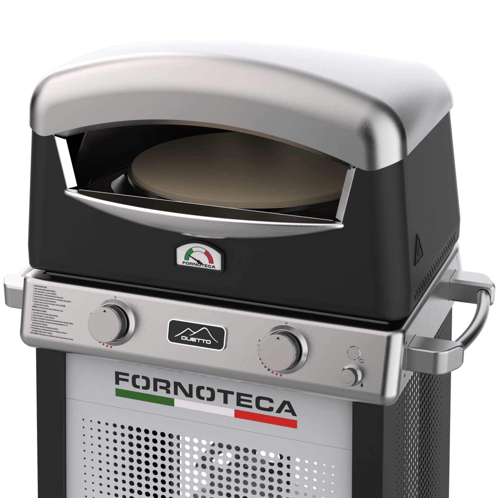 The Fornoteca® Pizza Oven with Mobile Cart features 2Stone® Technology with a rotating bottom stone for even. hassle-free cooking. Temperatures reach over 900°. cooking a pizza in as little as two minutes. and with the two handles and four locking swivel caster wheels. you’ll easily move the oven to your ideal location. With the included pizza peel. you’ll feel like a pro. ready to cook pizza and all your favorites for breakfast. lunch. and dinner!