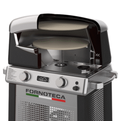 The Fornoteca® Pizza Oven with Mobile Cart features 2Stone® Technology with a rotating bottom stone to cook pizzas evenly. while its handles. wheels. and the included pizza peel make it easy to move and use the oven like a pro.