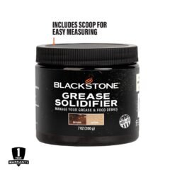 Conveniently solidify grease with the Blackstone Grease Solidifier. Adding just 1-2 scoops to every cup of hot grease will quickly solidify the grease so you can dispose of it faster. Each container comes with a scoop for easy measuring and includes 18 scoops of solidifier to last for multiple cooking sessions. Spend less time cleaning and more time with family and friends with the Blackstone Grease Solidifier!