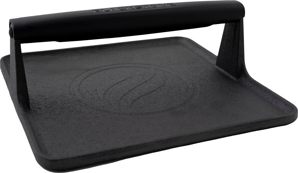 Step up your griddling and grilling game with the Blackstone Signature Griddle Press. Your sandwiches and burgers never looked (or tasted) so good. The Blackstone GE Large Griddle Press is crafted with heavy-gauge cast iron. which is perfect for giving that burger the extra something it’s been missing. With a heat-resistant. rubber-grip handle. you don’t have to worry about slipping. This must-have tool is exactly what you need to take your cooking to the next level. Just like the professionals. evenly cook your favorite foods like bacon. burgers. sausage. and so much more with our griddle press.