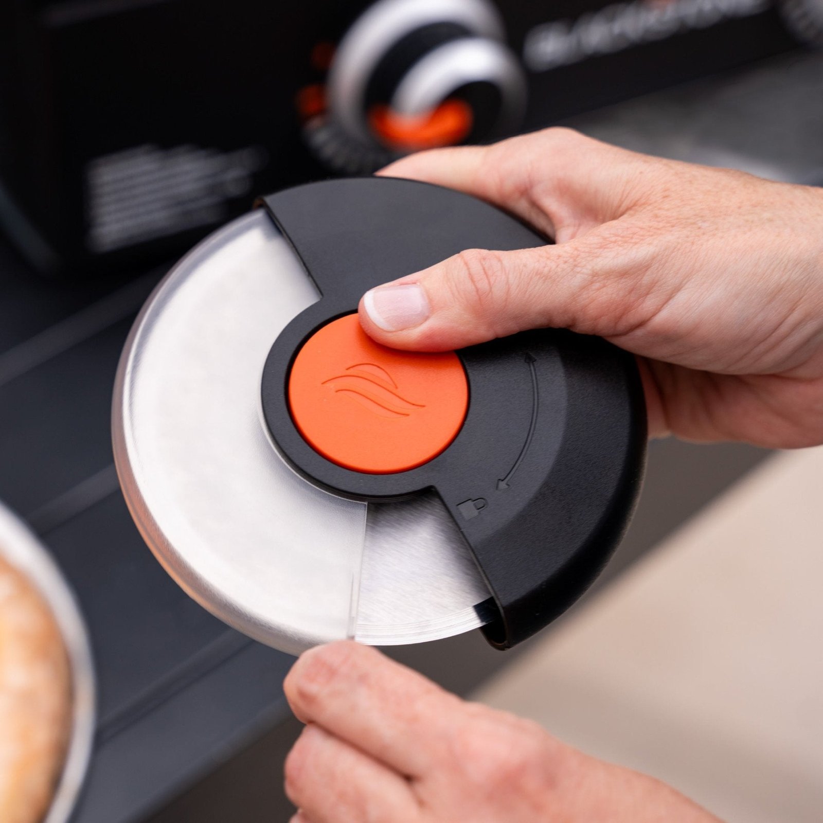 The Blackstone Palm Pizza Cutter makes it easy to cut pizza slices for your family and friends. The handheld design with comfortable grip gives you greater control over your pizza cut. Once you’re done simply twist the orange center piece to dismantle the tool and toss it in the dishwasher for an easy clean. Put the pieces back together and slide the protective sheath into place for safe storage and you’re ready for the next pizza party!