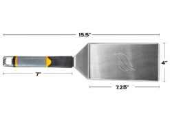 Everyone needs a good. durable griddle spatula. The Blackstone Signature Griddle Spatula is durable stainless steel. so you can griddle for a long time. This excellent spatula features an ergonomic slip-resistant grip and heat-resistant handle. allowing you to get right up to your griddle without your handle getting hot or uncomfortable. The blade is made of durable stainless steel with beveled edges perfect for chopping and scraping. and it easily slides under food. The best part? The tip of the handle doubles as a bottle opener. so you can crack open a drink without ever leaving the griddle. You won’t want to skip out on adding this fantastic spatula to your collection of Blackstone tools.