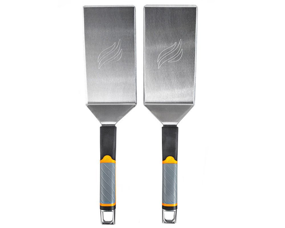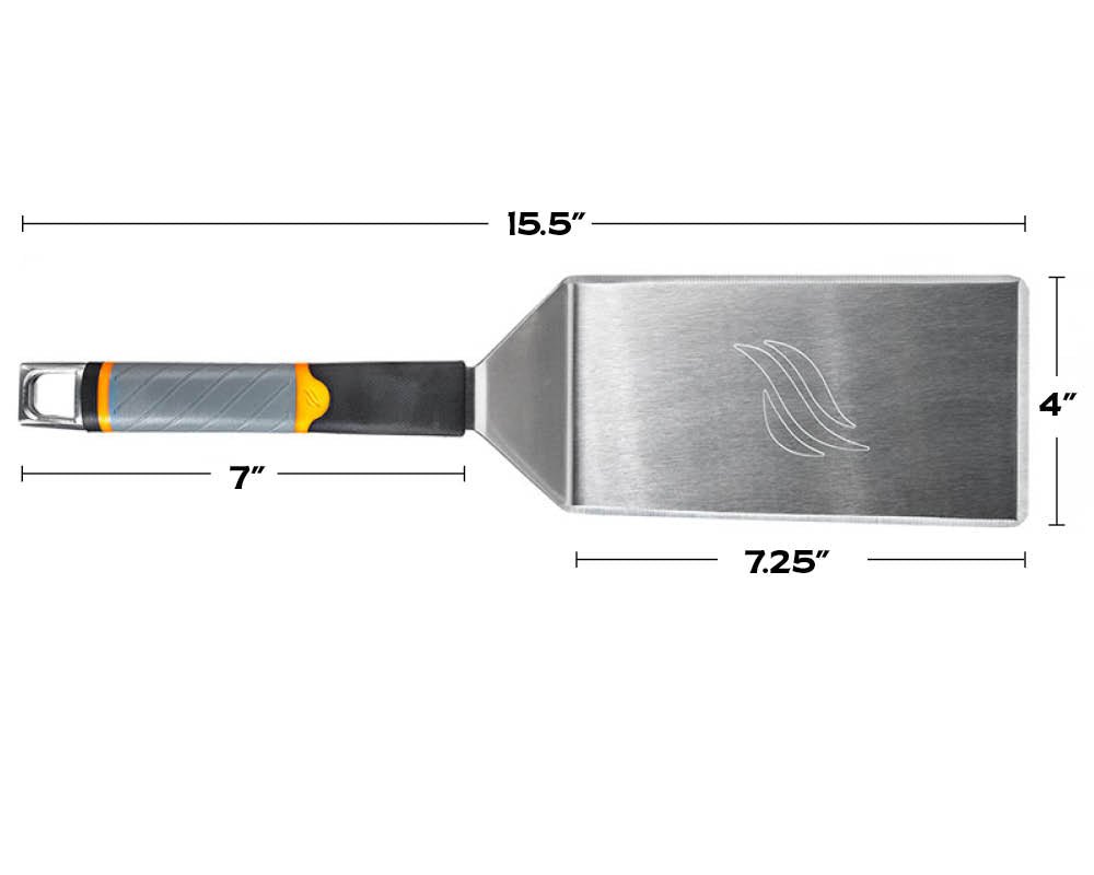 The Pro Series Griddle Spatula is made of durable stainless steel with a heat-resistant handle with heavy-duty silicone grip. Everyone needs a reliable spatula. and with the stylish design and built-in bottle opener at the end of the handle. the Pro Series Spatula is the perfect addition to your griddle gear.