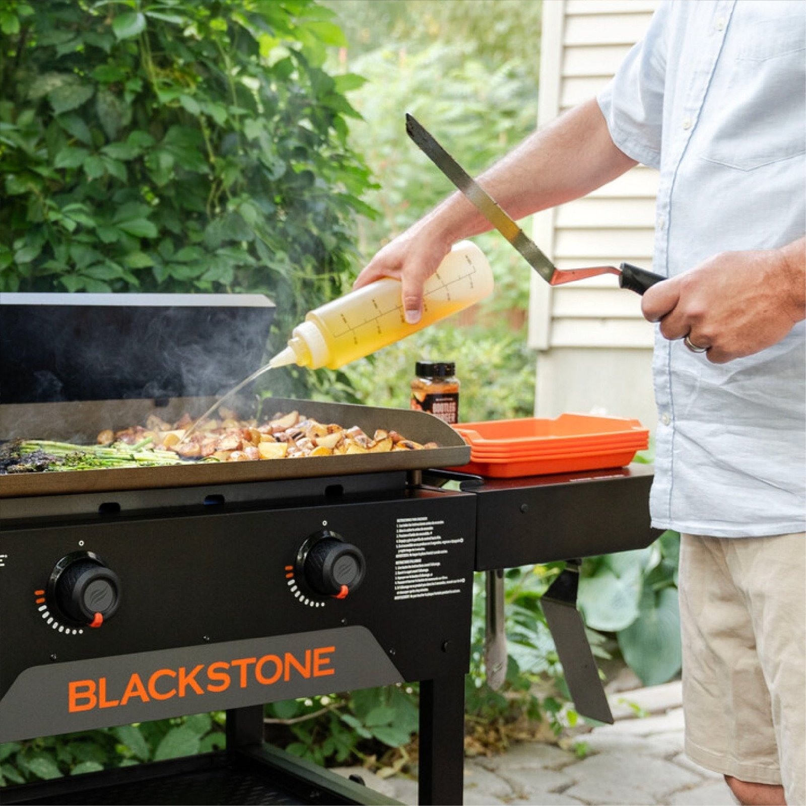 The Blackstone squeeze bottles are a must-have for cooking oil. water. sauce. and dressings. With water and sauce ready at hand. you’ll cook up delicious breakfast. lunch. and dinner every time!